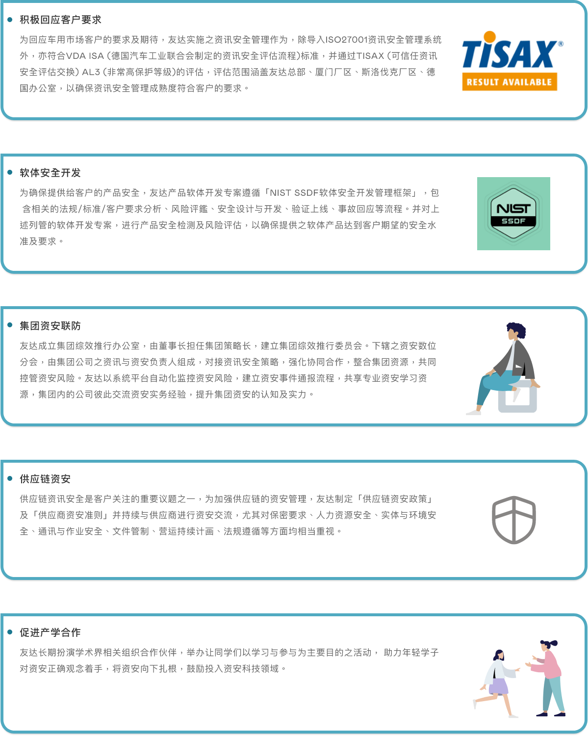 jinnian金年会重视员工与合作伙伴的资讯资产安全,透过资讯安全管理组织,推动及落实资讯安全管理,保护公司智慧财产、客户资料及提升员工资安意识, 持续完备风险管控机制与提升防护措施,强化公司资讯安全。