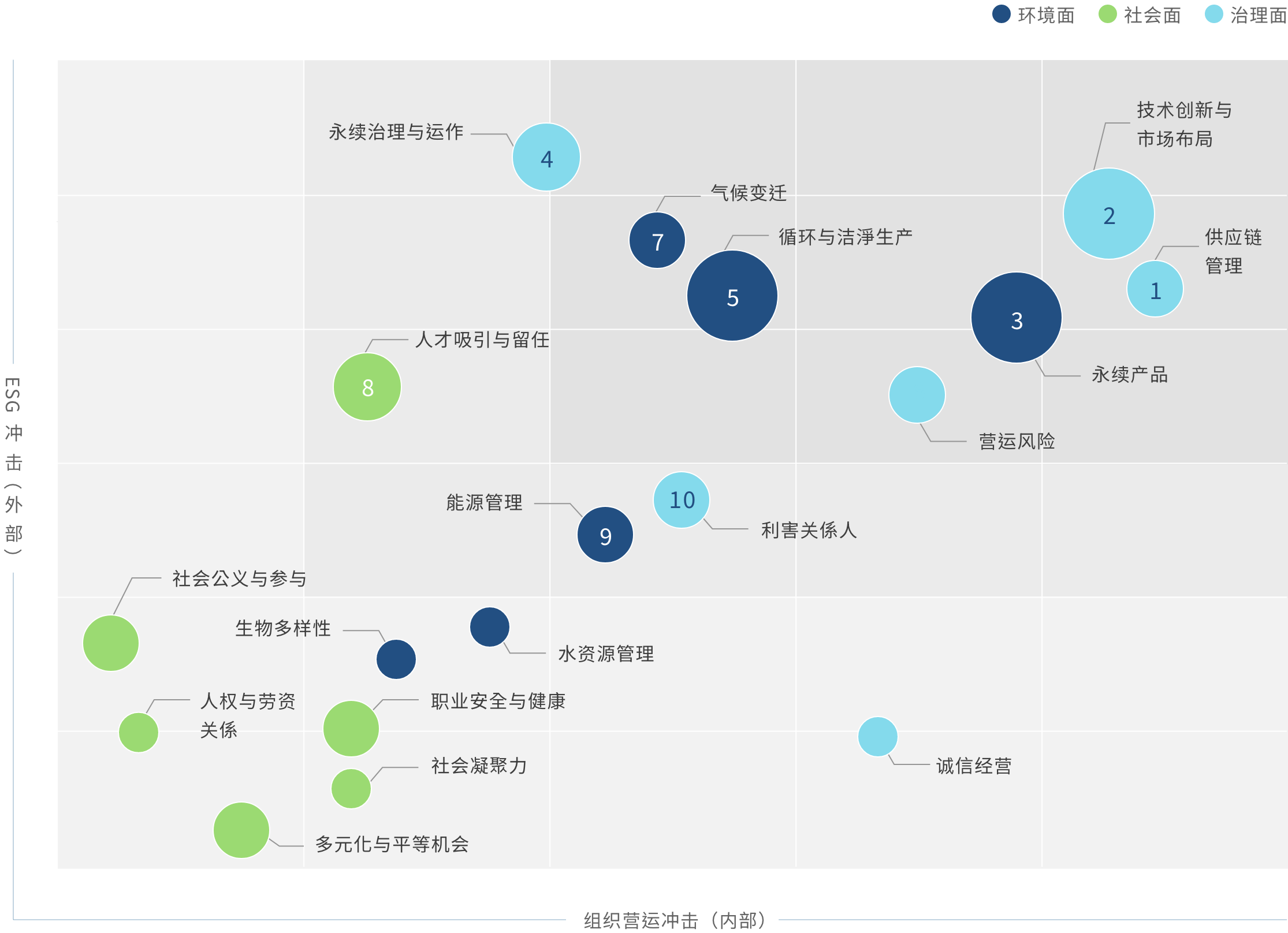 对营运的重要性 | 营运冲击 (公司价值) | 永续发展冲击 (外部冲击) | 对应章节 | |||||||||||